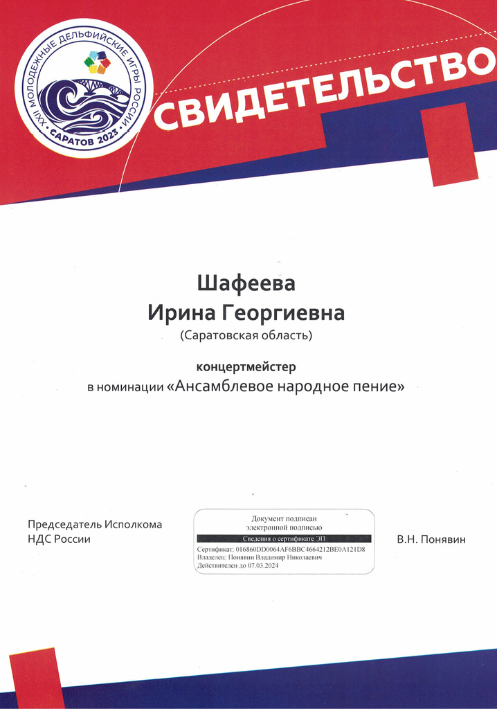 Поздравляем с успешным выступлением на XXII Молодёжных Дельфийских играх фольклорный ансамбль «Зёрнышко». Руководитель Твердохлеб Наталья Васильевна, концертмейстеры Пантелеев Павел Михайлович, Шафеева Ирина Георгиевна. Желаем дальнейших творческих успехов и побед!