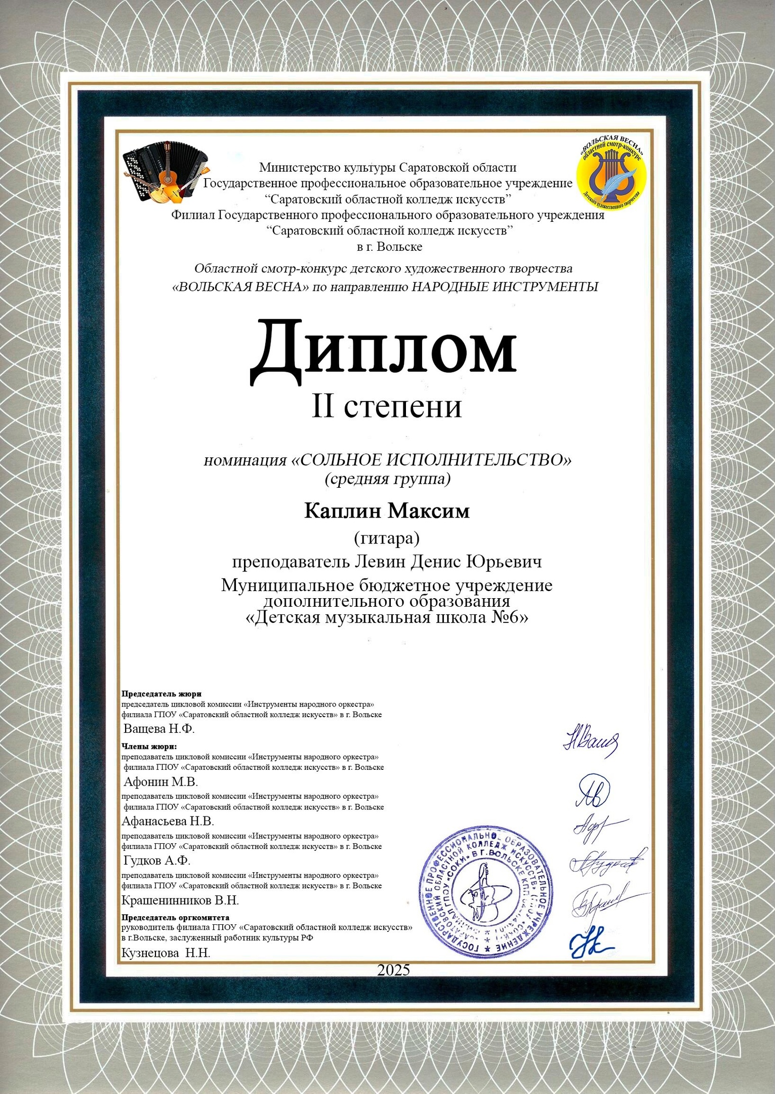 С 3 марта по 11 апреля 2025 года на базе филиала ГПОУ «Саратовский областной колледж искусств» в г. Вольске проходил Открытый областной смотр-конкурс детского художественного творчества «Вольская весна».