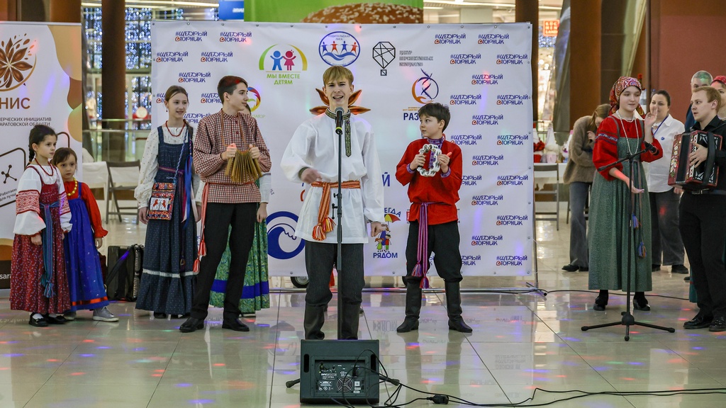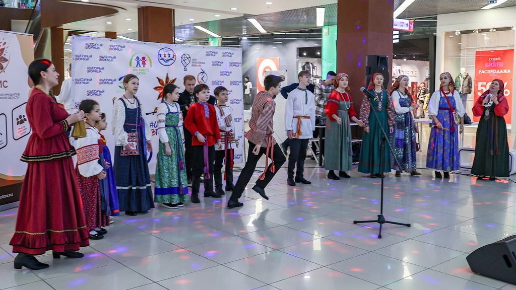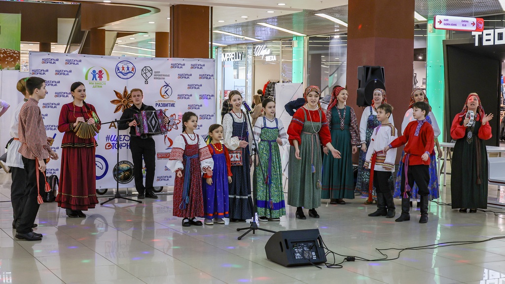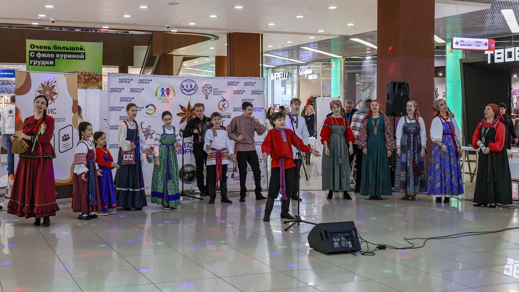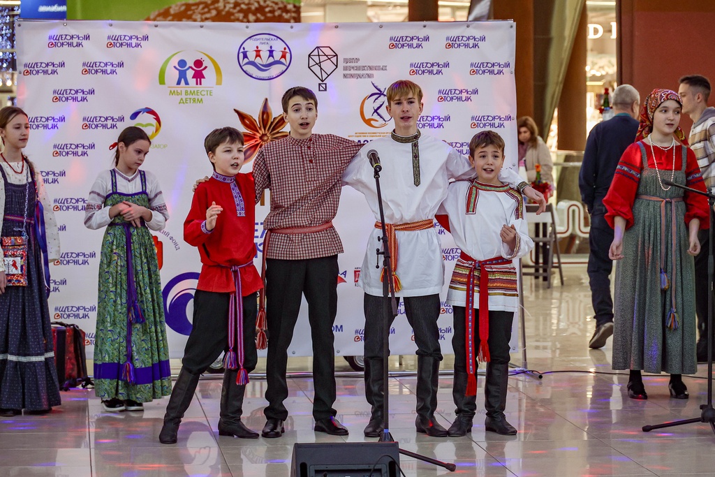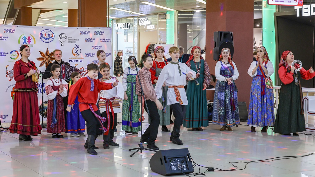2 декабря 2025 года коллективы нашей школы – Семейный круг, Зернышко, Братцы, а так же солисты фольклорного отделения школы Селезневы Ярослав и Мирослав, Адельгиреев Амир приняли участие во Всероссийском благотворительном мероприятии #ЩедрыйВторник, которое проходило на концертной площадке в фойе 2 этажа в Тау Галерее для жителей города и области.