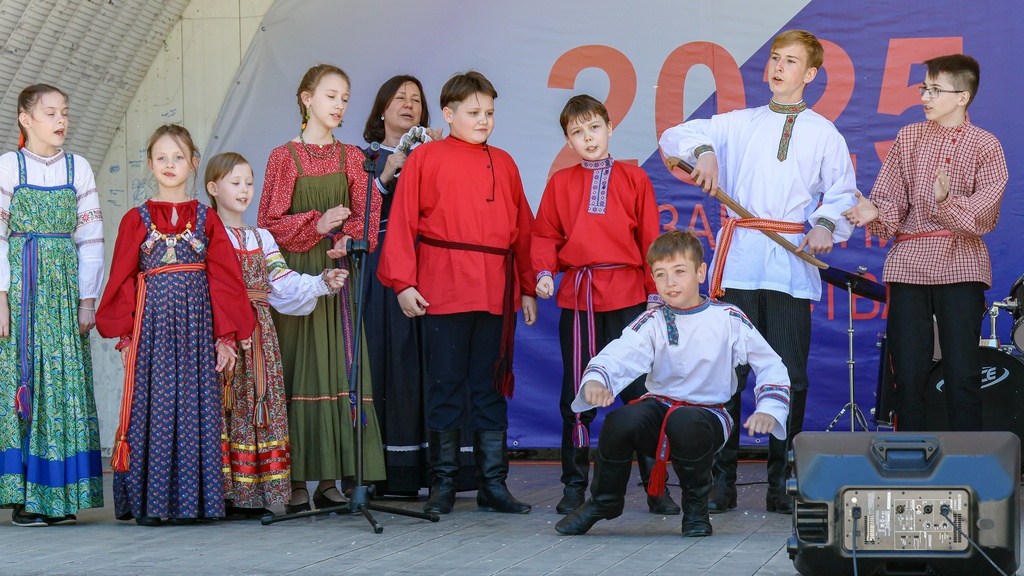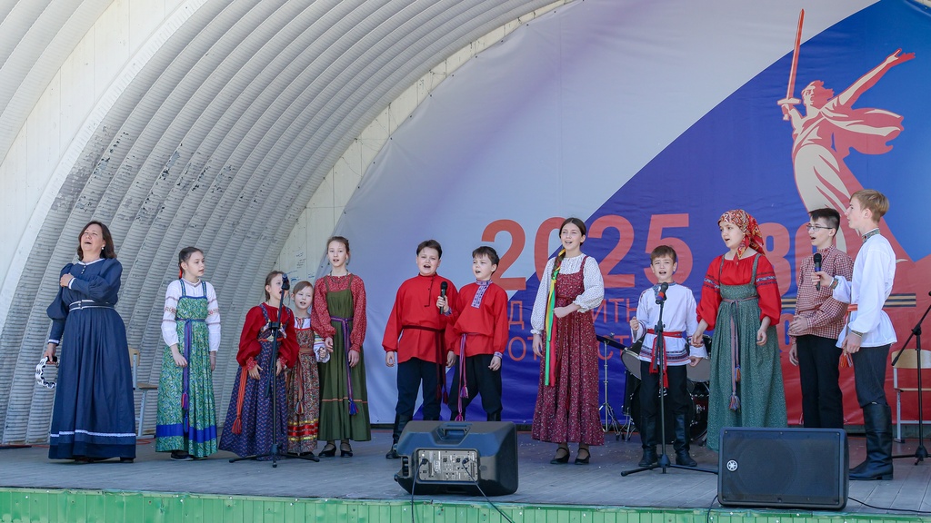 Прозвучавшая первой мелодия песни «Катюша» разлилась серебристым ручейком сквозь воздух парка. Голоса маленьких артистов звучали искренне и трогательно, заставляя слушателей погрузиться в далёкое прошлое, когда эта композиция стала живительным источником мужества и надежды во времена Великой Отечественной войны.