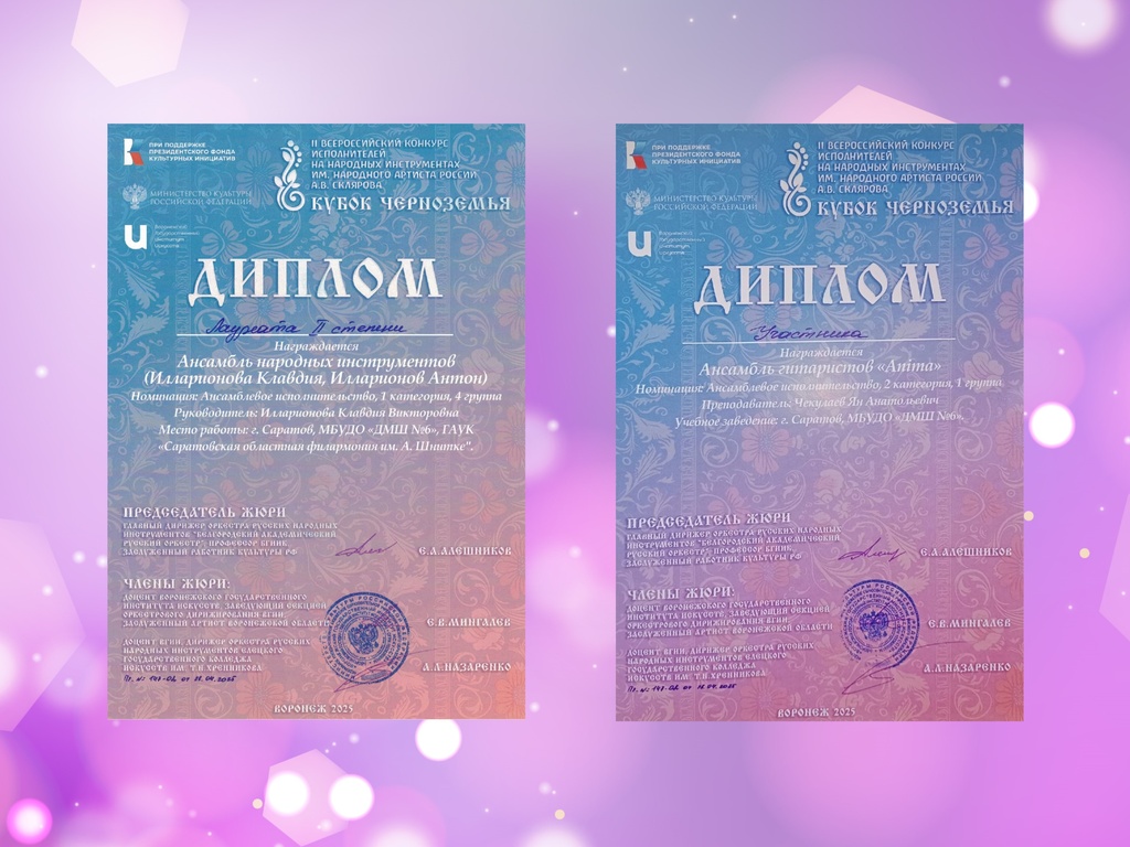 Поздравляем участников II Всероссийского (XXIX Регионального) конкурса исполнителей на народных инструментах имени А.В. Склярова «Кубок Черноземья» в номинации «Ансамблевое исполнительство»: