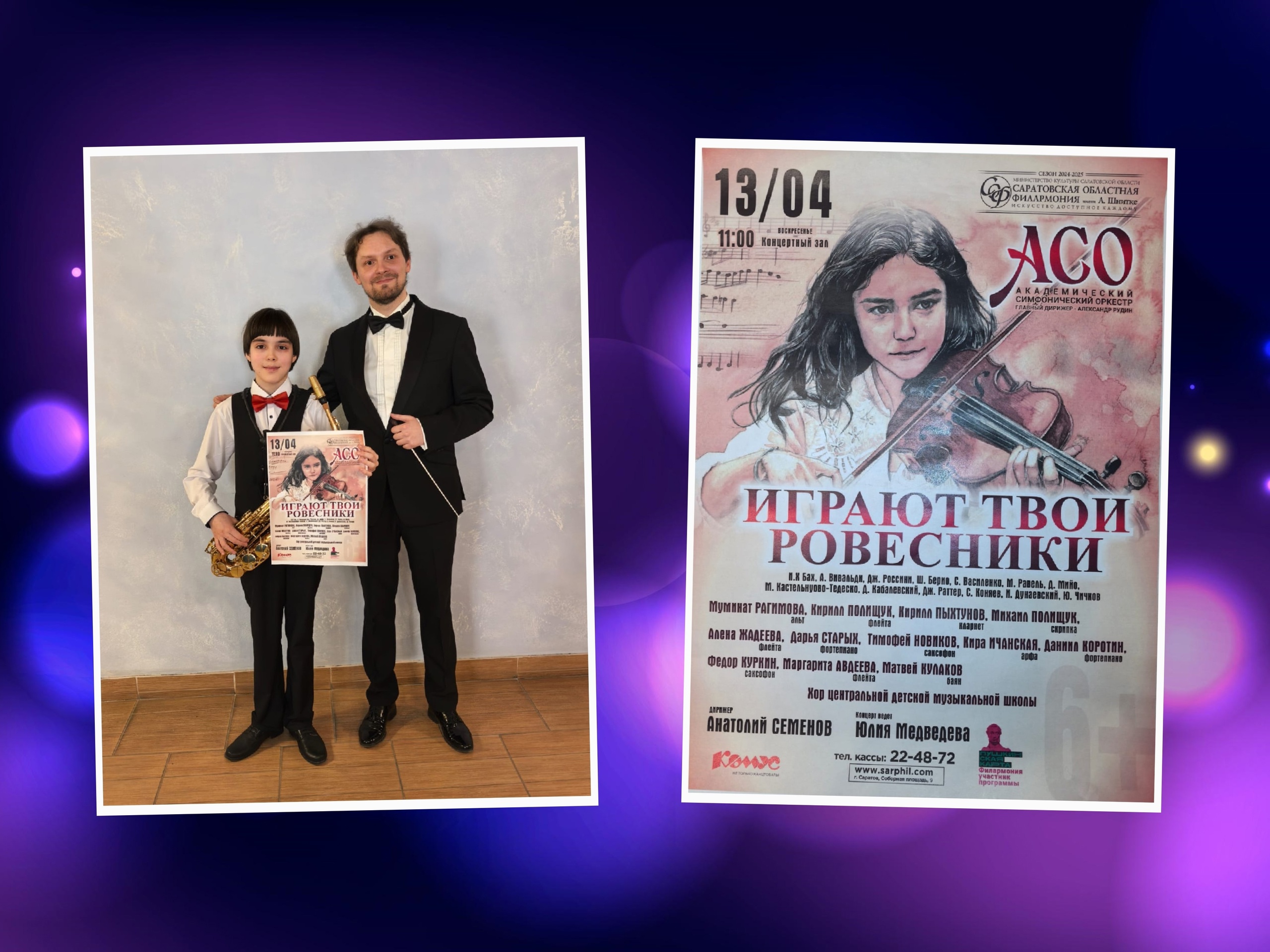 13 апреля 2025 года в Саратовской областной филармонии имени А. Г. Шнитке состоялся концерт «Играют твои ровесники», в рамках которого юные исполнители выступают на профессиональной сцене с симфоническим оркестром филармонии.