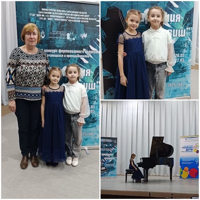 26 марта 2025 года ученицы нашей школы Щукарева Таисия (1 класс) и Каменева Есения (2 класс) преподавателя Медведевой Наталии Павловны приняли участие в областном конкурсе фортепианного искусства «Гармония клавиш». Конкурс проводился в городе Петровске. Ученицы выступали в младшей группе. Участие в конкурсе предоставило детям уникальную возможность проверить собственные способности, а также позволило им узнать больше о творчестве и достижениях других участников.