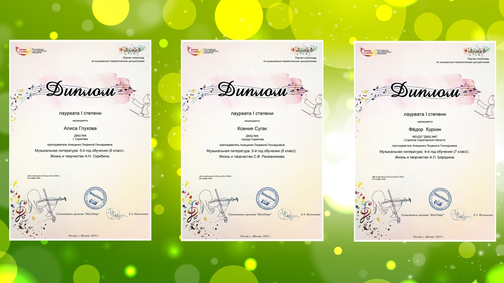 Поздравляем участников олимпиады по музыкальной литературе «BlitzOlimp»: