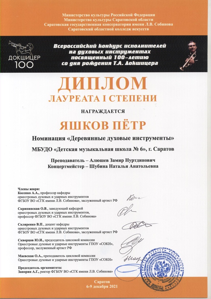 Поздравляем участников Всероссийского конкурса исполнителей на духовых инструментах, посвященного 100-летию со дня рождения Т.А. Докшицера: