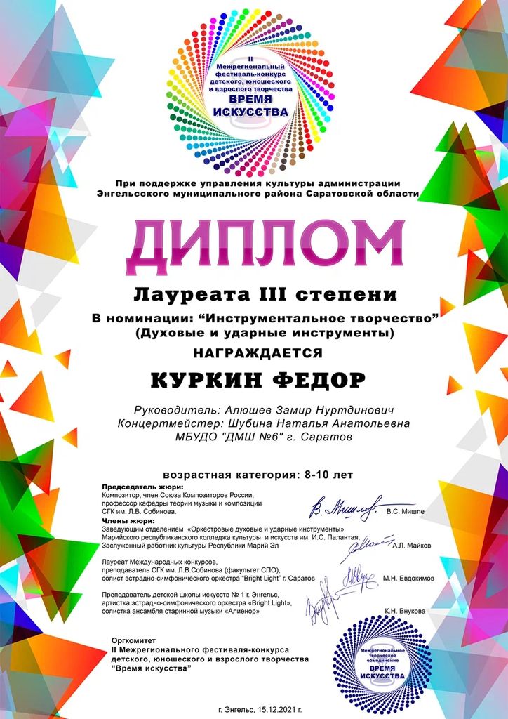 Куркина Фёдора – лауреата III степени